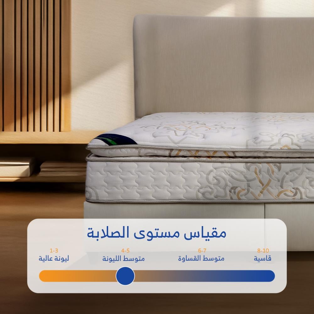 • تتميز المراتب بنظام الانحناء الذكي ويدعم حركة الجسم بفضل النوابض المنفصلة وعدم شعور الطرف الاخر بالحركة وتتحمل الاوزان الثقيلة وتعطي مثالية لنوم مريح.